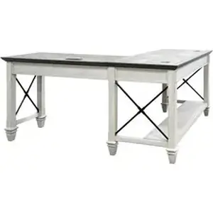 The Hartford L-Shaped Desk combines bold lines with a weathered, vintage finish and classic style elements. Distressing allows the natural wood grain to show through with added detail for an aged appearance. Top and back panel offer contrast with beautifully patterned veneers. Metal hardware and accents complete the design aesthetic for a look that is right at home in either a classic or more relaxed, eclectic home. It also includes a drop-front keyboard drawer and one utility drawer.