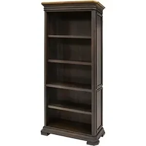 The Sonoma Bookcase features two lower doors to keep your items out of sight. Three adjustable shelves accommodate a wide range of items. Hand-planked wood veneers in a rich, dark roast finish the color of freshly brewed coffee show highlights of natural wood that has aged and is mildly distressed. Distressing includes rasping, chopping and worm holes along with varied species. Solid wood plank tops that accent the dark finish and emphasize the wood's natural beauty for two-tone authenticity. Antique bronze hardware adds a shimmering touch. Bookcase fits in rooms with 8' ceilings.