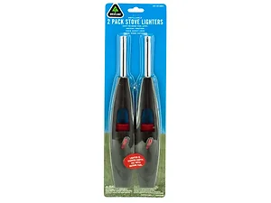 This dual-color pack of refillable stove lighters in black and red is designed for convenience and safety. Each lighter features an easy-to-read fuel level indicator, an electric ignition system, a child safety lock, and adjustable flame control for versatile use.