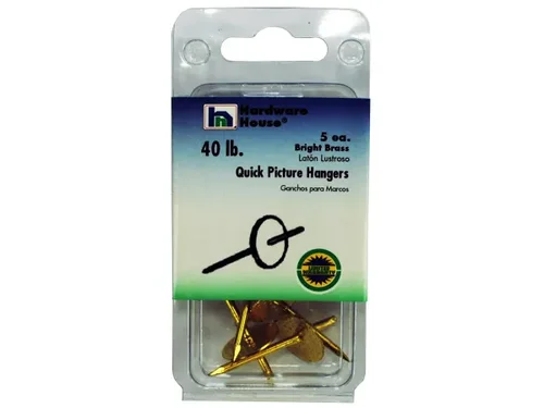 These heavy-duty brass picture hangers are perfect for securely hanging your artwork and photographs. Designed for simplicity and strength, they can hold up to 40 pounds, making them suitable for most framed pieces.