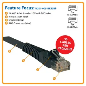Eaton N201-005-BK50BP ETHERNET CABLE - UNSHIELDED TWISTED PAIR (UTP) - MALE LEFT GENDER - MALE RIGHT G