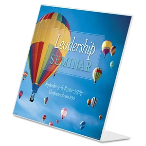 This clear slanted sign holder is perfect for displaying promotional materials and information in a professional manner. Its horizontal design accommodates standard 11 x 8.5 inch paper, making it easy to showcase your content. Ideal for retail environments, trade shows, or office use.