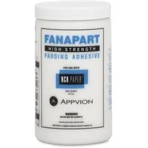Fanapart edge padding adhesive allows Appleton carbonless sheets, in the proper sequence, to be automatically fastened together into form sets. Noncoated surfaces of the CB and CF plies are carefully manufactured to precise standards so carbonless sheets will automatically separate into form sets. Designed to allow you to use the form sets approximately 20 minutes after the High Strength Fanapart Adhesive has been applied. Each bottle contains 1 quart.