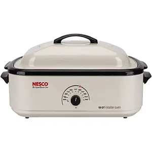 Nesco 4818-14 18-quart Classic Roaster Oven:Extra-high domeSelf-basting cover helps maintain moistureThe Nesco classic roaster oven features an adjustable thermostat up to 425 degrees FRemovable porcelain cookwellExclusive "Circle of Heat" heating elementHolds up to a 22 lb turkeyIvoryNesco oven has handles that stay cool while cooking18 quart capacity Includes removable metal cooking rack