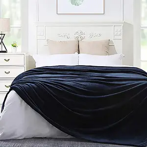 Inland 90015 NEXHOME FLEECE BLANKET THROW SIZE NAVY LIGHTWEIGHT SOFT COZY BED BLANKET FOR COU