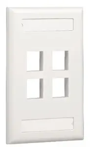 The Panduit NetKey Flush Mount Screw-On Faceplate is designed for seamless integration with your network systems. This 1-gang, light gray faceplate accommodates up to 4 ports, making it an ideal solution for organized and efficient wiring.