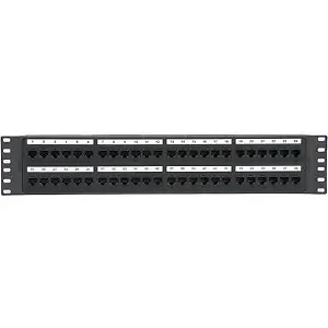 The 48-Port Cat 6 Flat Punchdown Patch Panel is designed for efficient and organized networking solutions. This 2RU patch panel is compatible with standard 19-inch racks and features robust construction for long-lasting performance. Ideal for data centers and structured cabling systems.