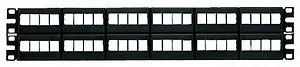 The Panduit NetKey 48-Port Modular Faceplate Patch Panel is designed for efficient connectivity in network environments. This 2U patch panel fits into standard 19" racks, providing a sleek and organized solution for your wiring needs.