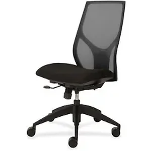 Vault Task Chair with no arms goes beyond the expected with features that let you personalize your comfort. Uncommon for a mesh back design, ratchet back-height adjustment lets you raise or lower the backrest from 23" to 25-1/2" for the greatest comfort. High-quality, woven tension mesh in black conforms to your back, following every move with support, including the lumbar region. Seat slider adjusts the seat depth from 16" to 18-1/2" so you are just where you need to be. Other functions include upright tilt lock, 3:1 back-to-seat tilt ratio, center knob tension adjustment, pneumatic seat-height adjustment from 17-1/2" to 22-1/2" and 360-degree swivel. High-resilient, molded foam seat features a waterfall seat front to promote circulation and good health. 20" wide seat is upholstered in Onyx fabric. Durable, black nylon base with five casters offers long, trouble-free service. Weight capacity is 300 lb.