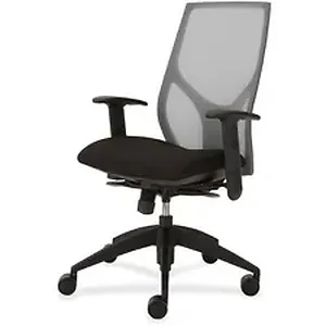 Vault Task Chair with full synchro tilt goes beyond the expected with features that let you personalize your comfort. Uncommon for a mesh back design, ratchet back-height adjustment lets you raise or lower the backrest from 23" to 25-1/2" for the greatest comfort. High-quality, woven tension mesh in gray conforms to your back, following every move with support, including the lumbar region. Seat slider adjusts the seat depth from 16" to 18-1/2" so you are just where you need to be. T-shaped arms adjust in height by 3-1/2" with the push of a button. Other functions include three-position tilt lock, 2:1 back-to-seat tilt ratio, center knob tension adjustment, pneumatic seat-height adjustment from 17-1/2" to 22-1/2" and 360-degree swivel. High-resilient, molded foam seat features a waterfall front to promote circulation and good health. 20" wide seat is upholstered in Onyx fabric. Durable, black nylon base with five casters offers long, trouble-free service. Weight capacity is 300 lb.