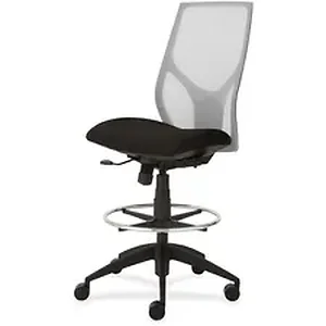 Vault Mid-back Stool with no arms goes beyond the expected with features that let you personalize your comfort. Uncommon for a mesh back design, ratchet back-height adjustment lets you raise or lower the backrest from 23" to 25-1/2" for the greatest comfort. High-quality, woven tension mesh in white conforms to your back, following every move with support, including the lumbar region. Seat slider adjusts the seat depth from 16" to 18-1/2" so you are just where you need to be. Other functions include upright tilt lock, 3:1 back-to-seat tilt ratio, center knob tension adjustment, pneumatic seat-height adjustment from 23" to 31" for use with worksurfaces up to 36" high and 360-degree swivel. High-resilient, molded foam seat features a waterfall seat front to promote circulation. 20" wide seat is upholstered in Onyx fabric. Durable, black nylon base with five casters offers long, trouble-free service. Weight capacity is 300 lb.