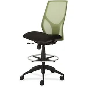 Vault Mid-back Stool with no arms goes beyond the expected with features that let you personalize your comfort. Uncommon for a mesh back design, ratchet back-height adjustment lets you raise or lower the backrest from 23" to 25-1/2" for the greatest comfort. High-quality, woven tension mesh in green conforms to your back, following every move with support, including the lumbar region. Seat slider adjusts the seat depth from 16" to 18-1/2" so you are just where you need to be. Other functions include upright tilt lock, 3:1 back-to-seat tilt ratio, center knob tension adjustment, pneumatic seat-height adjustment from 23" to 31" for use with worksurfaces up to 36" high and 360-degree swivel. High-resilient, molded foam seat features a waterfall seat front to promote circulation. 20" wide seat is upholstered in Onyx fabric. Durable, black nylon base with five casters offers long, trouble-free service. Weight capacity is 300 lb.