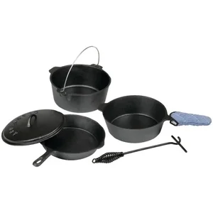 Elevate your outdoor cooking with the Stansport 6-Piece Iron Cook Set. This durable and versatile cookware is perfect for camping, hiking, and backyard barbecues. Made from cast iron, this set ensures even heat distribution and perfect cooking results.
