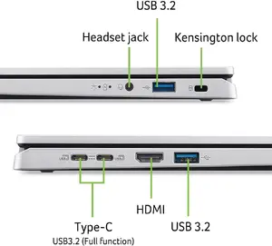 The 14.0-inch WUXGA Acer ComfyView LED-backlit IPS Display provides stunning visuals with a resolution of 1920 x 1200, 300nit brightness, and a 16:10 aspect ratio, ensuring vibrant and clear images.