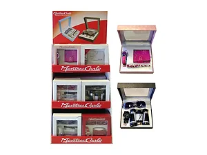 This stylish tabletop watch display is designed with three tiers to prominently showcase a variety of men's and women's watches. Featuring a header card with vibrant product images, this display includes brand logos printed on the front and sides, offering an attractive visual presentation for any retail setting.