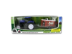 This set features a variety of styles and colors, ensuring there's a perfect tractor for every young farmer. Each item is packaged in a durable box with a clear plastic front, making it an excellent gift option. Tractors measure approximately 7 1/4" x 3 3/4" x 4 1/4", while the trailers vary in size and shape to enhance playtime variety.