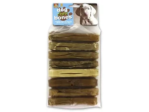 Keep your dog entertained and healthy with our pack of 8 long-lasting chew bones. These 4.5-inch bones are designed to satisfy your dog's natural urge to chew while promoting dental health. Chewing helps to strengthen your dog's jaws and clean their teeth, making playtime beneficial.