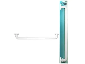 Made from sturdy plastic and available in a sleek white finish, it can be easily mounted on wood or drywall surfaces. The towel bar comes securely packaged on a tie card with a convenient hanging hole, ensuring effortless installation.