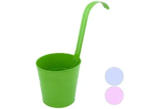 The Metal Hanging Bucket Planter is perfect for adding a touch of charm to your garden or outdoor space. Designed to be hung over fences, walls, or railings, these planters allow for easy display of your favorite plants. Simply insert a standard pot holder into the bucket to create a beautiful floral arrangement.