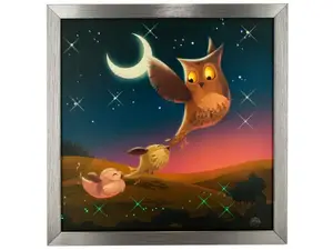 When activated, the artwork twinkles and plays the gentle lullaby, "Goodnight", perfect for bedtime storytelling and sweet dreams. Made of high-quality canvas and framed with a sleek silver finish, this artwork is not only adorable but also a charming addition to decor.