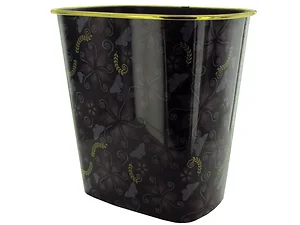 Add a touch of charm to your space with our Elegant Floral Design Wastebasket. Designed to be functional yet stylish, this decorative wastebasket features a gold-rimmed black plastic construction adorned with delightful floral, heart, and butterfly patterns.
