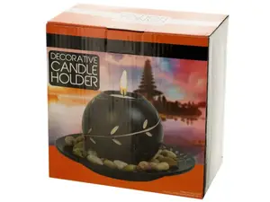 Bulk Buys OC846 Elegant Black Round Candle Holder with River Stones