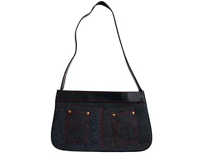 This stylish Blue Denim Handbag with Red Stitching is perfect for your everyday look. Its unique design resembles the back of a pair of jeans, offering both fashion and functionality.