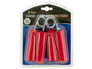 Great for travel and every day use, this 2-piece Hand Grip Exerciser Set features heavy duty steel springs with foam handles to target wrist and forearm muscles. Simply squeeze the handles for a strengthening workout. Comes packaged in a clam shell.