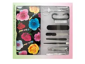 This stylish 10-piece Manicure Set is perfect for both travel and home use. It includes an array of essential nail tools stored in a convenient carrying case, allowing you to keep everything organized.