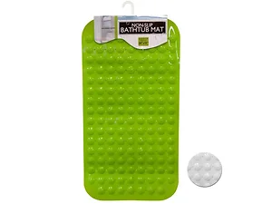 The Non-Slip Bath Mat with Textured Grip ensures safety during your bathing routine. Designed with a durable plastic material, this mat features a unique textured pattern that provides a massage-like experience for your feet while preventing slips. Its strong suction cups on the underside hold it securely in place, allowing you to enjoy a worry-free shower or bath. Measuring approximately 28" x 15", it fits most tubs and is available in assorted colors. Packaged with a convenient hanging panel for easy display.