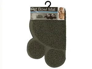 Eliminate clean-up time by containing your pet's food and water mess with this Easy Clean Paw Print Pet Bowl Mat featuring a cushioned mat in a paw print shape with an anti-slip bottom. Prevents your pet from pushing bowls around the room and helps protect floors from spills. Measures approximately 21" x 17". Comes in assorted colors. Comes packaged to a hanging panel.