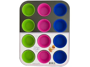 Bulk Buys OF522 12-Cup Muffin Baking Pan with Reusable Silicone Cups