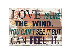 Featuring the words, "Love is like the wind. You can't see it but can feel it," this sign is a reminder of the invisible yet powerful force of love. The sign measures approximately 11" x 0.5" x 8" and comes shrink wrapped for protection.