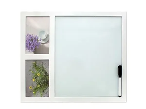 Showcase your favorite memories and jot down reminders with our Dual Photo Display Whiteboard. This stylish white frame features two dedicated photo windows, allowing you to display your cherished moments, while the whiteboard surface beneath provides a perfect space for notes and to-do lists. The product comes complete with a dry erase marker equipped with an eraser for convenient note-taking.