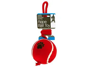 Ideal for fetching, tossing and gnawing, this Jumbo Tennis Ball with Rope Dog Toy features an oversized durable tennis ball with a paw print accent and a cotton rope going through it with a looped handle for easy tossing and tugging. Ball measures approximately 4" in diameter. Comes in assorted colors. Comes packaged to a hanging panel.