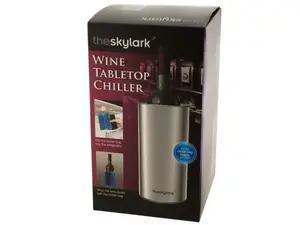 Keep your wine perfectly chilled during dinner parties and gatherings with our Elegant Black Wine Tabletop Chiller. This stylish chiller features a sleek, plastic-lined black aluminum container, complemented by an innovative gel cooler bag that ensures your wine stays cold for hours. To use, simply refrigerate the cooler bag, wrap it around your wine bottle, and place it in the tabletop chiller. It is ideal for any occasion and comes packaged in an individual box, making it a great gift for wine enthusiasts.