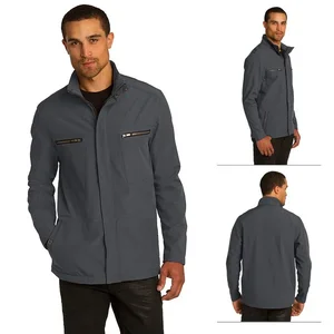 Stay stylish and protected from the elements with the OGIO Men's Intake Jacket. This soft shell jacket offers exceptional wind and rain resistance, featuring a waterproof rating of 3000MM and breathability of 3000G/M2. Its modern design includes a cadet collar, convenient zippered pockets, and a storm flap to keep you comfortable and organized. Perfect for outdoor adventures or casual outings.