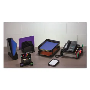 Magazine file holds and organizes magazines, brochures, literature and more. Open top accepts taller items including journals and books. Wide, partially open front allows easy insertion and removal. Front space lets you conveniently label the file for quick reference to specific items. Convenient nonskid base makes sure the durable plastic file stays put on your desktop.