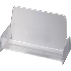 Business card holder holds approximately 50 cards. Broad base prevents tipping and spilling. Card holder is made of shatter-resistant plastic.