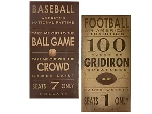 Elevate your space with this Classic Sports Canvas Wall Art, designed especially for football and baseball enthusiasts. This artwork showcases iconic sports sayings accompanied by vintage-style graphics, giving it an antique aesthetic that complements any decor. The durable polyester canvas is expertly wrapped around a sturdy composite wood frame.