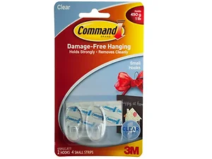 The 3M Clear Damage-Free Small Hanging Hooks are ideal for hanging small items without the hassle of damage. This convenient set includes two transparent hooks that blend seamlessly with any decor. Each hook is designed to hold up to 1 pound, making it perfect for lightweight decorations, pictures, and more.