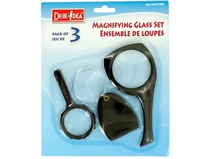 This 3-piece Magnifying Glass Set is an essential tool for anyone who needs assistance with reading small print, examining details, or exploring the wonders of the world around them. Featuring two handled magnifying glasses in different sizes and a pocket-sized magnifying glass with an attached case, it offers convenience and versatility. Ideal for use at home, in the office, or on the go.