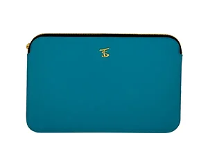 Protect your device in style with the Talia Shore Blue Ultra Slim Tablet Sleeve. This beautifully designed sleeve features a textured vinyl padded case, ensuring that your device is secure and stylish. The eye-catching gold zipper adds a touch of elegance, while the golden yellow fabric lining complements the exterior. Perfectly sized to fit the 11" MacBook Air and most devices with 11" screens, this sleeve is ideal for anyone on the go.
