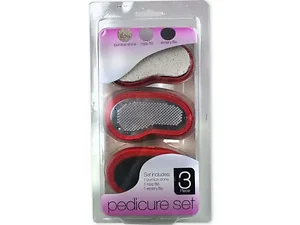 Easily make your feet soft and touchable with this 3-piece Pedicure Pod Set featuring high quality tools to shave calluses, remove dead skin and smooth skin. Set includes: 1 pumice stone, 1 rasp file and 1 emery file. Comes packaged in a clam shell.