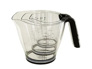 A kitchen essential, this 3-Piece Measuring Cup Set is designed for durability and ease of use. Crafted with clear plastic, the cups come in three sizes: 1-cup, 2-cup, and 4-cup. Each cup is clearly marked with measurements in cups, milliliters, and ounces. The rubberized handles and bases provide stability during use, making it easy to pour ingredients without spills.