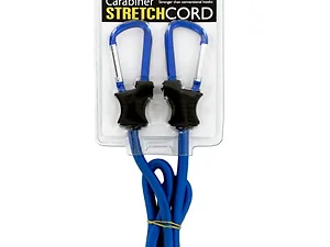 An ideal solution for strapping down and securing your gear, this Carabiner Stretch Cord features a thick nylon-covered stretch cord with metal carabiner clips that are easy to attach and are stronger than conventional hooks. Cord measures approximately 36" long. Comes in assorted colors. Comes packaged in a clam shell.