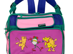 The Vibrant Kids' Animal Character Backpack is perfect for school, travel, and everyday adventures. Made from durable, water-resistant nylon, it showcases a playful patchwork design with cheerful animal characters adorning the front zipper pocket.
