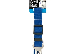Secure your dog while traveling with this Adjustable Dog Seat Belt featuring a durable nylon belt with a metal hook to attach to collars and a metal tab that inserts into standard seat belt receptacles. Adjusts from 16" to 25". Comes packaged to a hanging panel.