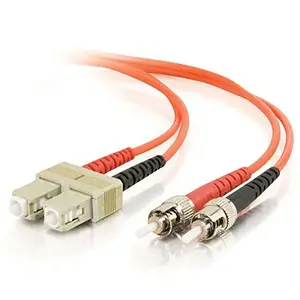C2G 1m OM2 Duplex Multimode Fiber Optic Cable with ST to SC connectors. This patch cable is designed for high-performance connectivity in fiber optic networks. Featuring a 50/125 micron multimode fiber, it supports a range of applications with reliable data transmission.