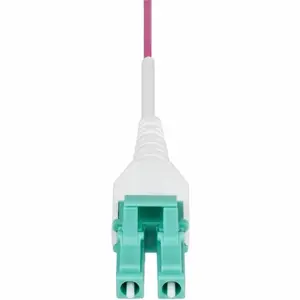 40m (131ft) OM4 LC/LC UPC OM4 LOMMF cable supports 1/10/40/100 Gbps duplex connections - Erika Violet is TIA-standardized for clear OM4 fiber identification; Compact uniboot LC connector is suitable for high-density installations; 50/125 m fiber core/cladding w/OFNR Riser Rated jacket - Optimized for r2000MHz.km at 850nm w/VCSEL; Facilitate high-bandwidth multimode transmissions between servers and Storage Area Networks (SANs) - Cord O.D.: 1.6mm; Temp Range: -20 to 60 C (-4 to 140 F)